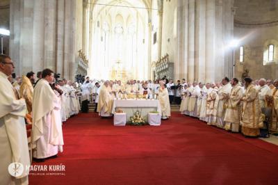 A gyulafehérvári főszékesegyházben bemutatott ünnepi szentmisén koncelebrált több mint negyven főpásztor, köztük Veres András, a Magyar Katolikus Püspöki Konferencia (MKPK) elnöke; Erdő Péter bíboros, prímás, esztergom-budapesti érsek; Udvardy György veszprémi érsek, az MKPK alelnöke; Ternyák Csaba egri érsek, Bábel Balázs kalocsa-kecskeméti érsek és az MKPK számos tagja; valamint közel négyszáz pap. A protestáns és ortodox testvéregyházakat is magas szinten képviselték. Jelen volt Semjén Zsolt miniszterelnök-helyettes, Kövér László, az Országgyűlés elnöke, Soltész Miklós, a Miniszterelnökség egyházi és civil kapcsolatokért felelős államtitkára és Potápi Árpád János nemzetpolitikáért felelős államtitkár.