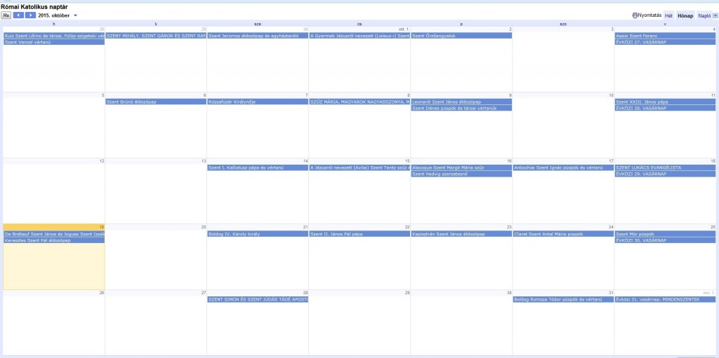 2. A római katolikus iCal-naptár linkje más naptárba való beszúráshoz:
