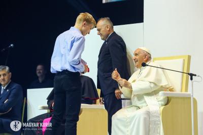 Fotó: Lambert Attila (Ferenc pápa magyarországi látogatása, találkozó a fiatalokkal, Budapest, Papp László Sportaréna, 2023. április 29.)